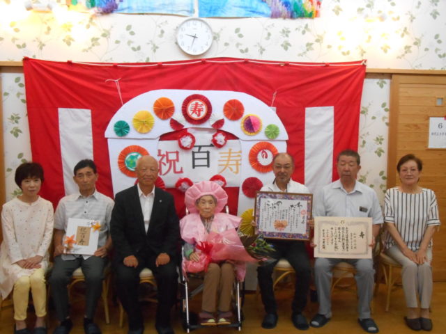 当苑では今年度最初の百歳祝いが8月に行われました。今回、コロナ流行から三年ぶりに、市長様をはじめ、ご家族の皆様にも来苑していただくことができました。桃色の祝い着を身にまとい、少し緊張されていましたが、ご家族の訪問に笑顔がこぼれます。式典...